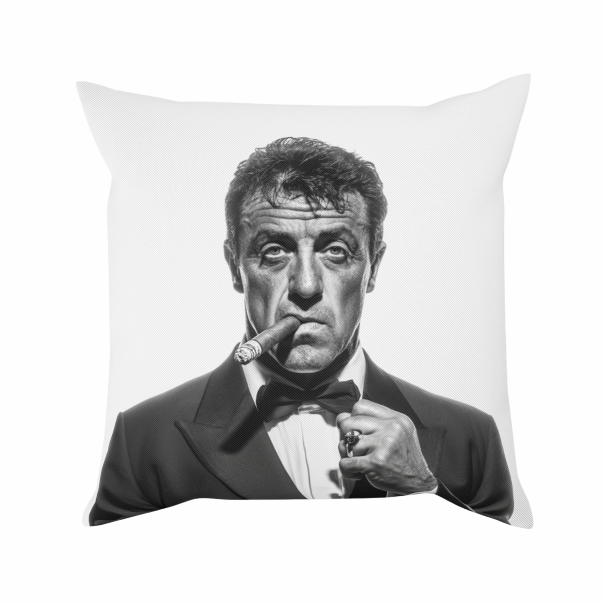 Das Kissen von cushionique mit dem Motiv eines charismatischen Gentlemen im Smoking bleibt: auf dem Sofa, im Lieblingssessel oder im Wohnzimmer – ein echtes Statement-Stück, das täglich Freude macht.