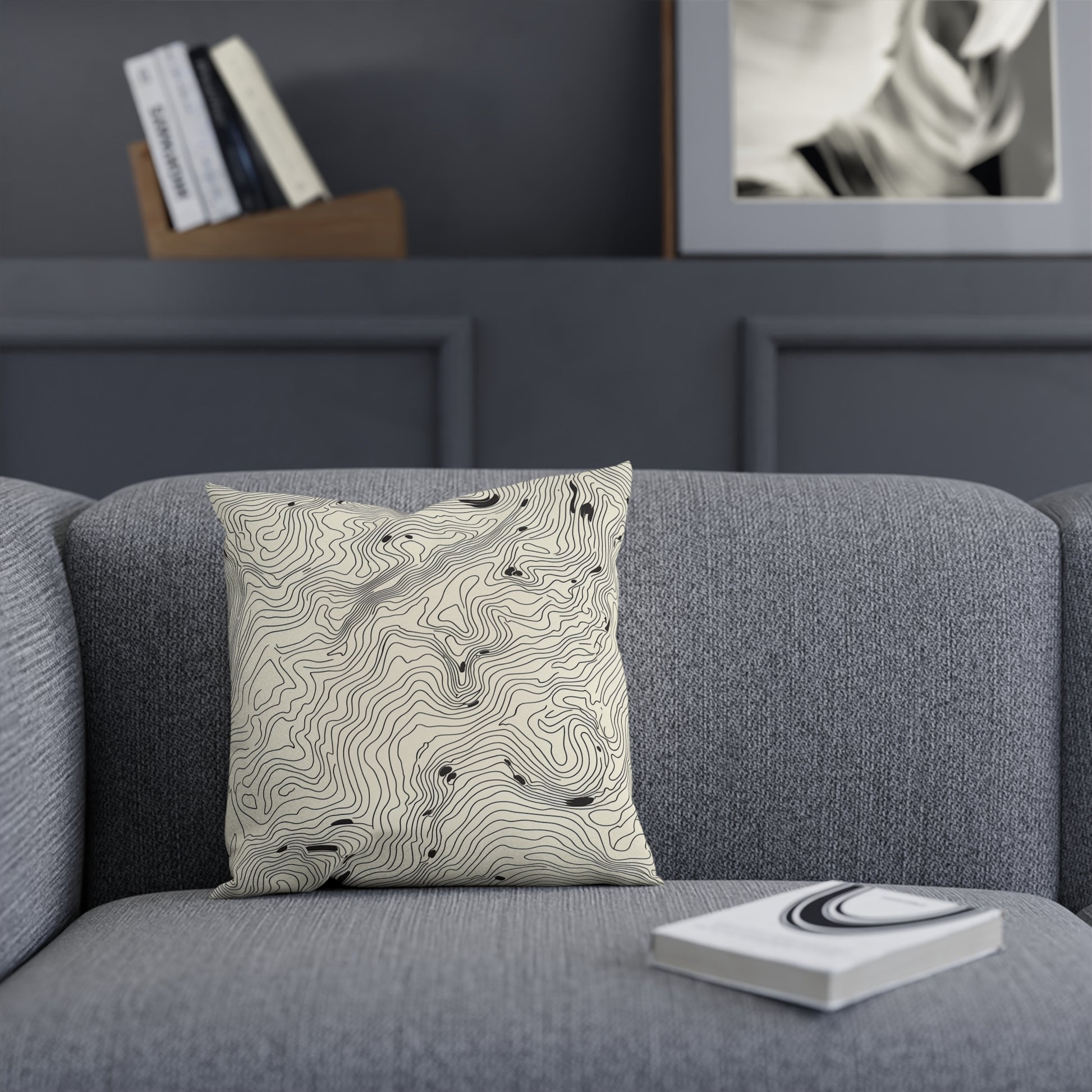 Markant und zugleich elegant – „Ink Contour“ zieht mit seinen kontrastreichen Höhenlinien in tiefem Schwarz auf sanftem, neutralem Hintergrund sofort die Blicke auf sich. Das Design vereint grafische Strenge mit natürlicher Leichtigkeit und fügt sich mühelos in moderne, monochrome oder kreative Wohnräume ein.