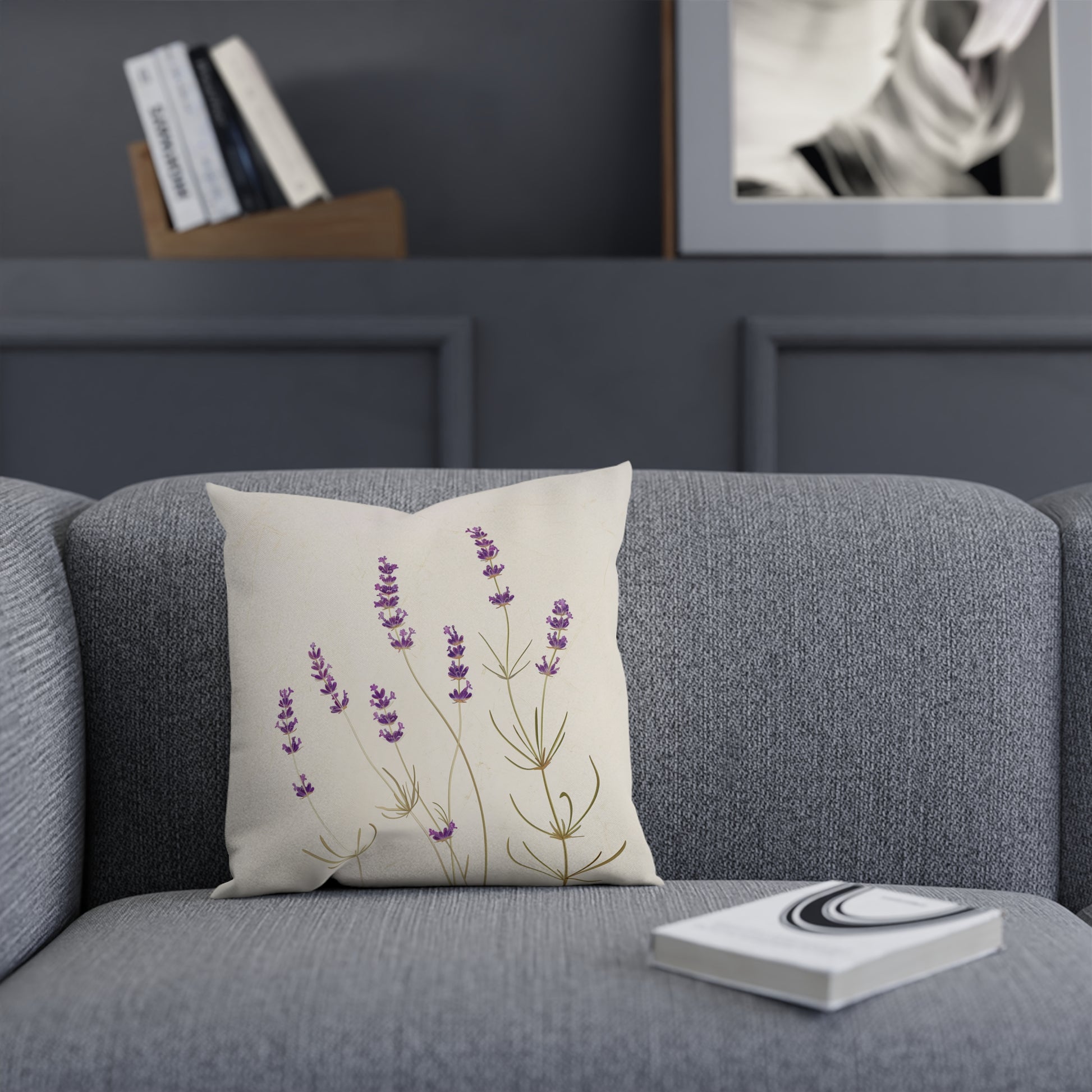 Hol dir den beruhigenden Charme blühender Lavendelfelder nach Hause – „Lavender Sprigs“ zeigt hohe, violette Lavendelstängel auf einem sanften Beigeton. Dieses Kissen verbindet natürliche Schönheit mit einem Hauch ländlicher Eleganz. Ob im Wohnzimmer, Schlafzimmer oder auf der Terrasse – es sorgt überall für entspannte Stimmung und stilvolle Frische.