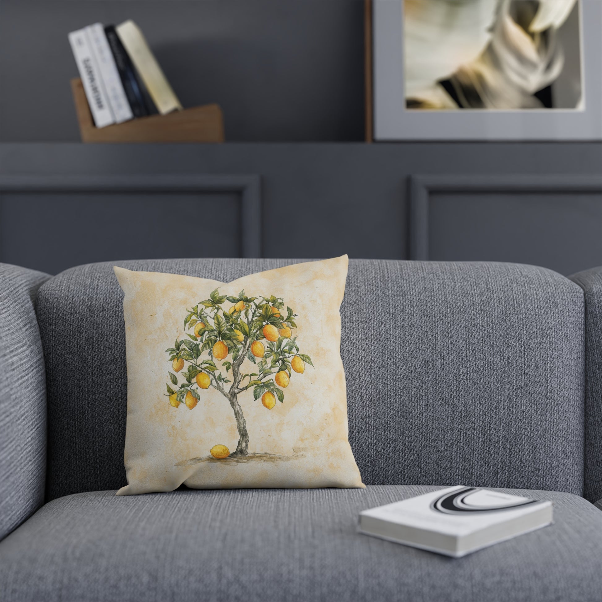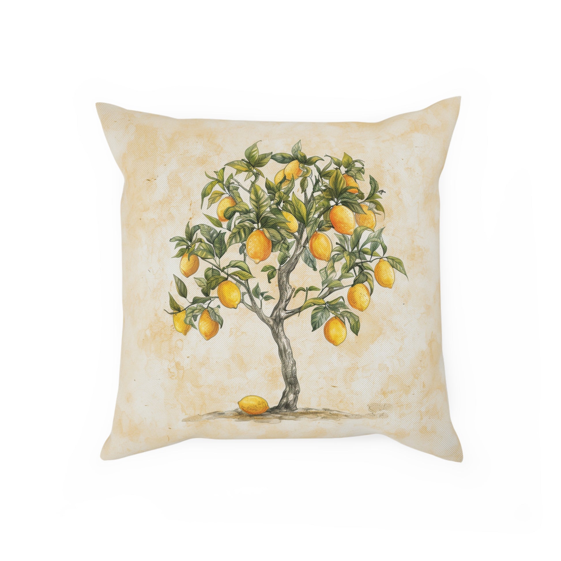 Hol dir mediterranes Sommerfeeling nach Hause – „Lemon Tree“ zeigt einen detailreichen Zitronenbaum voller reifer Früchte. Dieses Kissen bringt Wärme, Frische und einen Hauch rustikalen Charmes in jeden Raum. Ob auf dem Sofa, der Gartenbank oder im Wintergarten – es sorgt überall für sonnige Akzente und gute Laune.