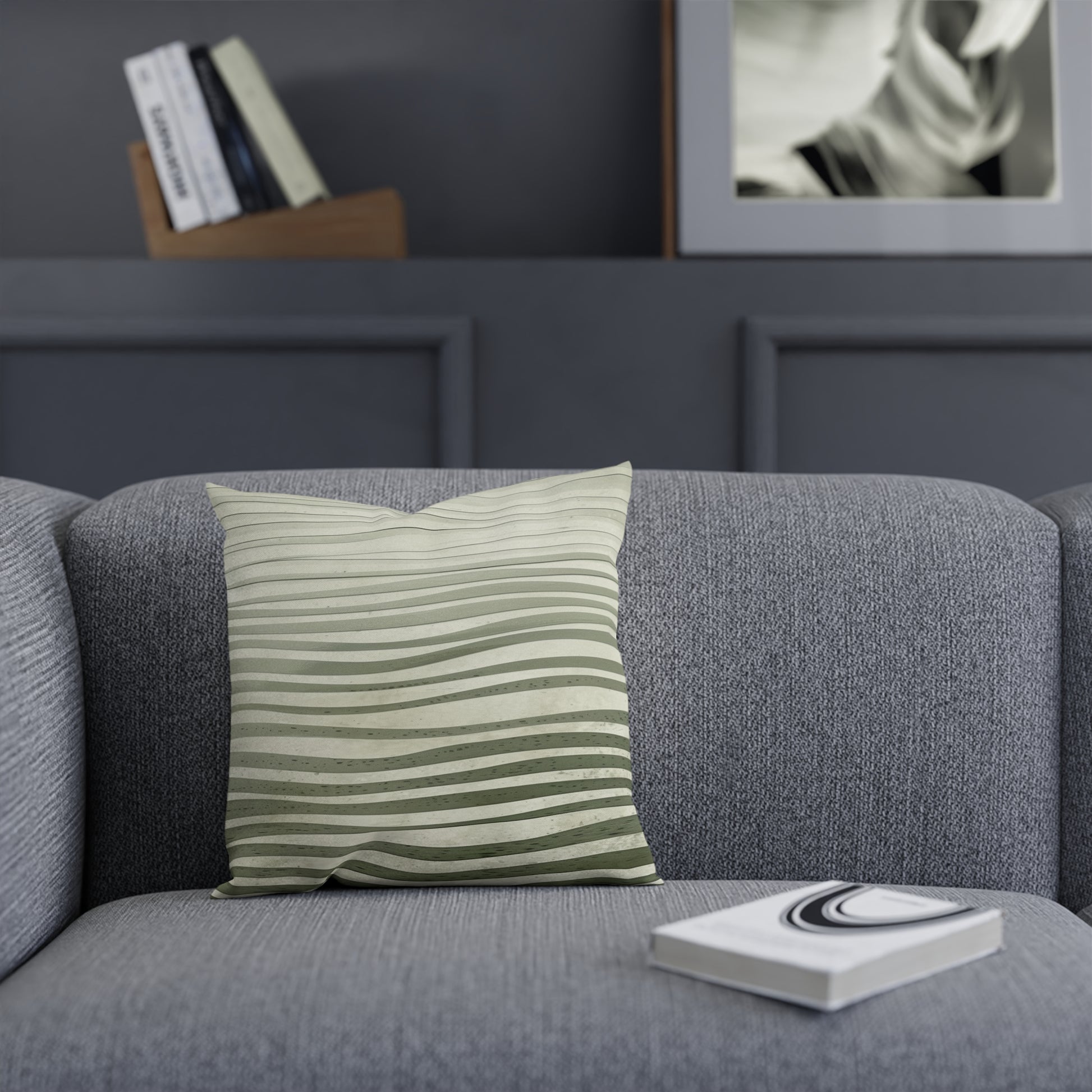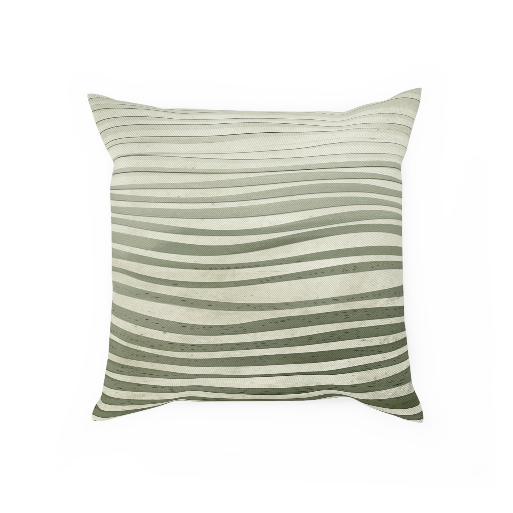 Das Kissen „Olive Drift“ zeigt sanft fließende Linien in gedämpften Grüntönen – inspiriert von natürlichen Landschaften und der Leichtigkeit einer Meeresbrise. Das wellenartige Muster bringt ruhige Bewegung und dezenten Minimalismus in moderne wie auch naturverbundene Wohnräume.