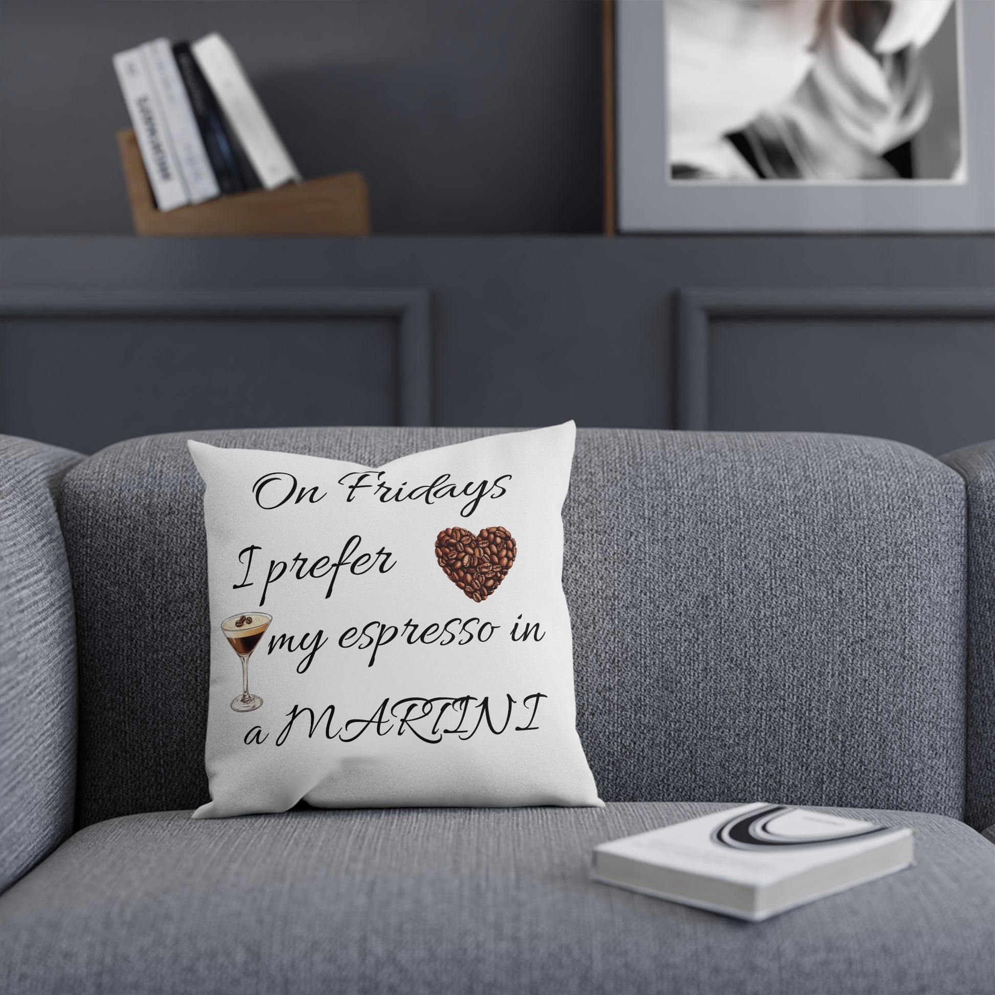 Mit einem Augenzwinkern und viel Stil – das „Espresso Martini“-Kissen trägt den Spruch:
