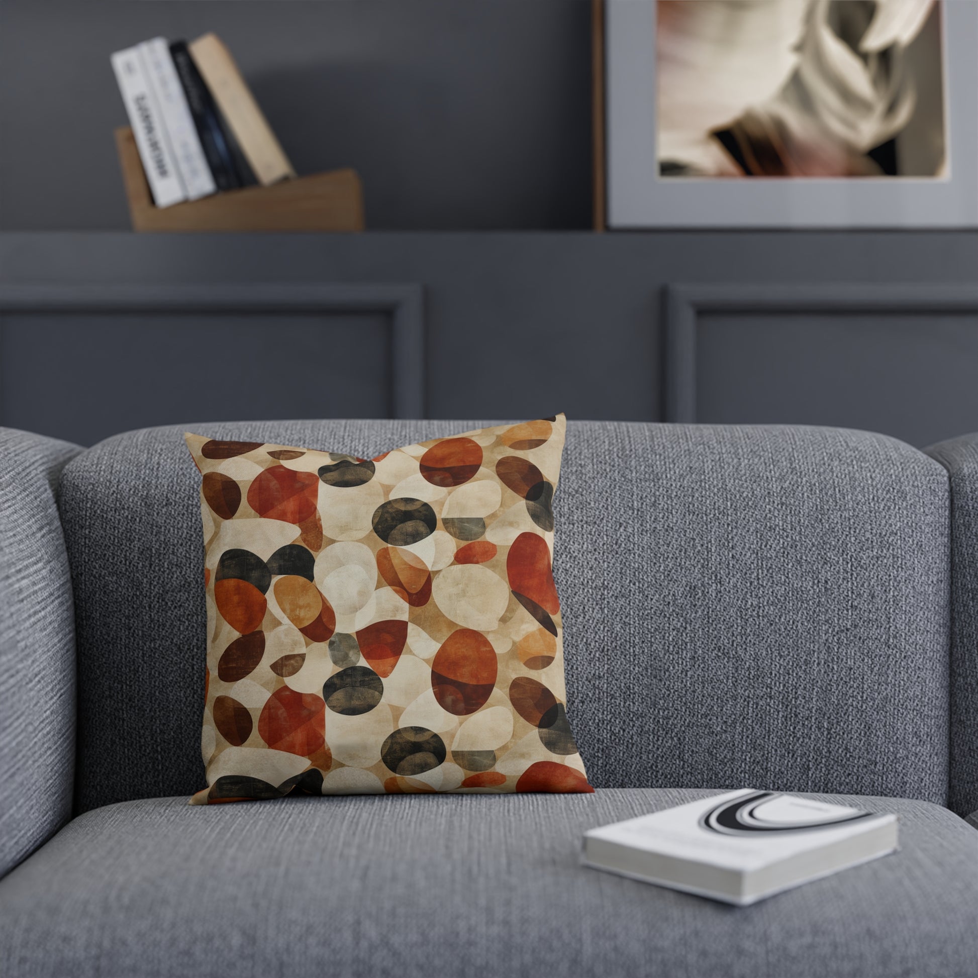 Warme, erdige Töne überlagern sich wie verstreute Steine im sanften Sonnenlicht. Mit einer Farbpalette aus Ton, Anthrazit und Sand schafft „Rust Pebbles“ eine gemütliche und geerdete Atmosphäre – ideal für Boho-Interiors, natürliche Einrichtungen oder rustikal inspirierte Wohnräume.