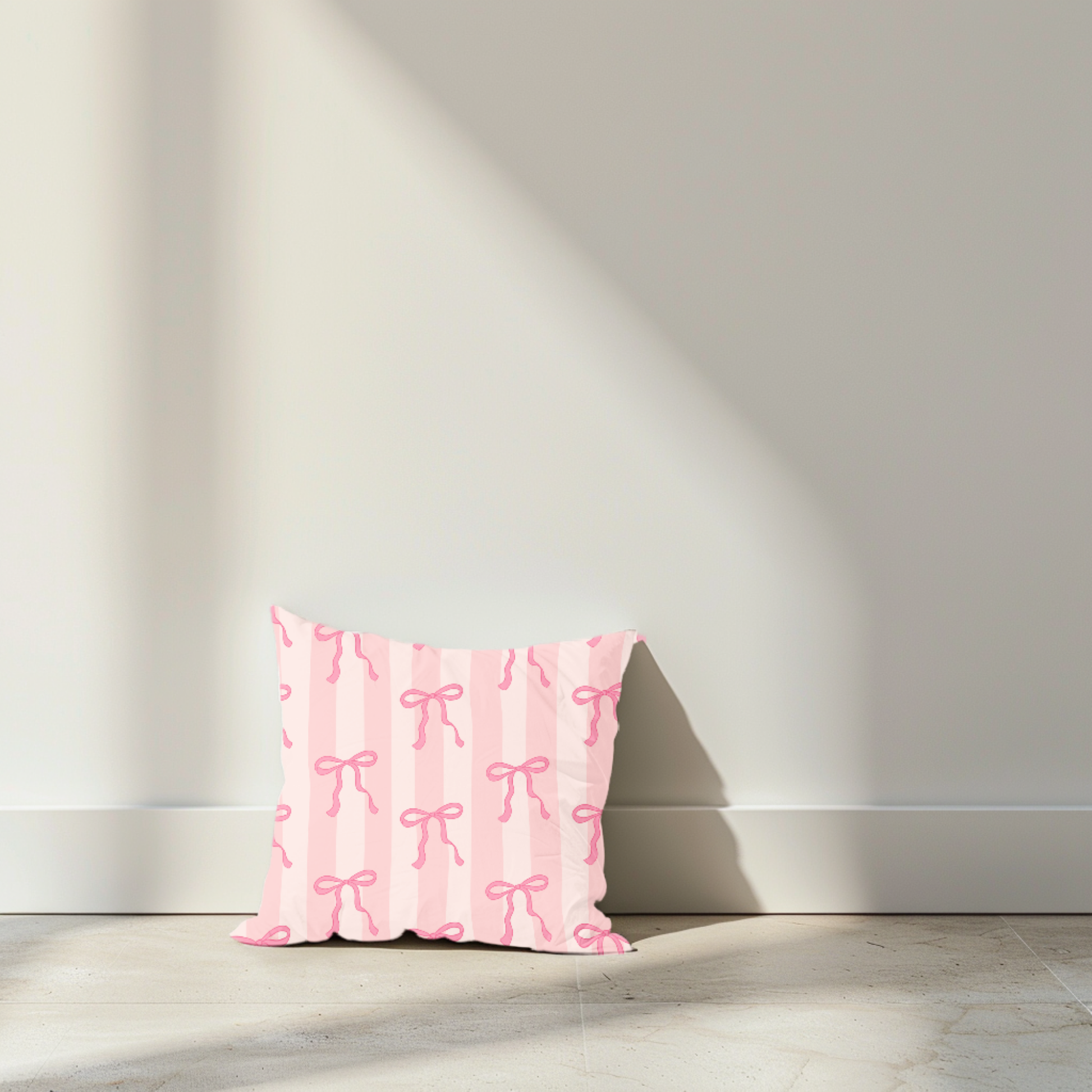 Dieses Dekokissen mit feinen Schleifchen auf rosa Streifen wirkt ruhig, feminin und trotzdem modern. Das zarte Rosa bringt Wärme in den Raum, ohne aufdringlich zu sein. Die kleinen Schleifen setzen einen subtilen Akzent und geben dem Design einen klaren, trendbewussten Charakter.