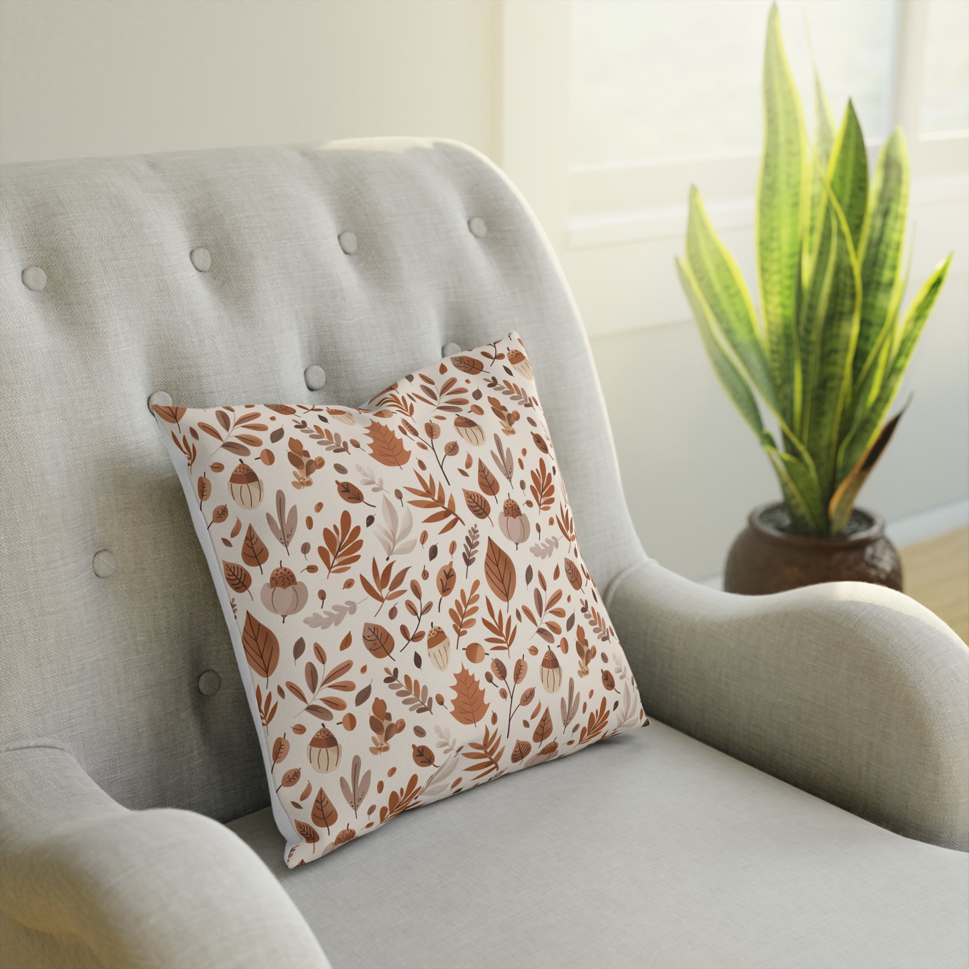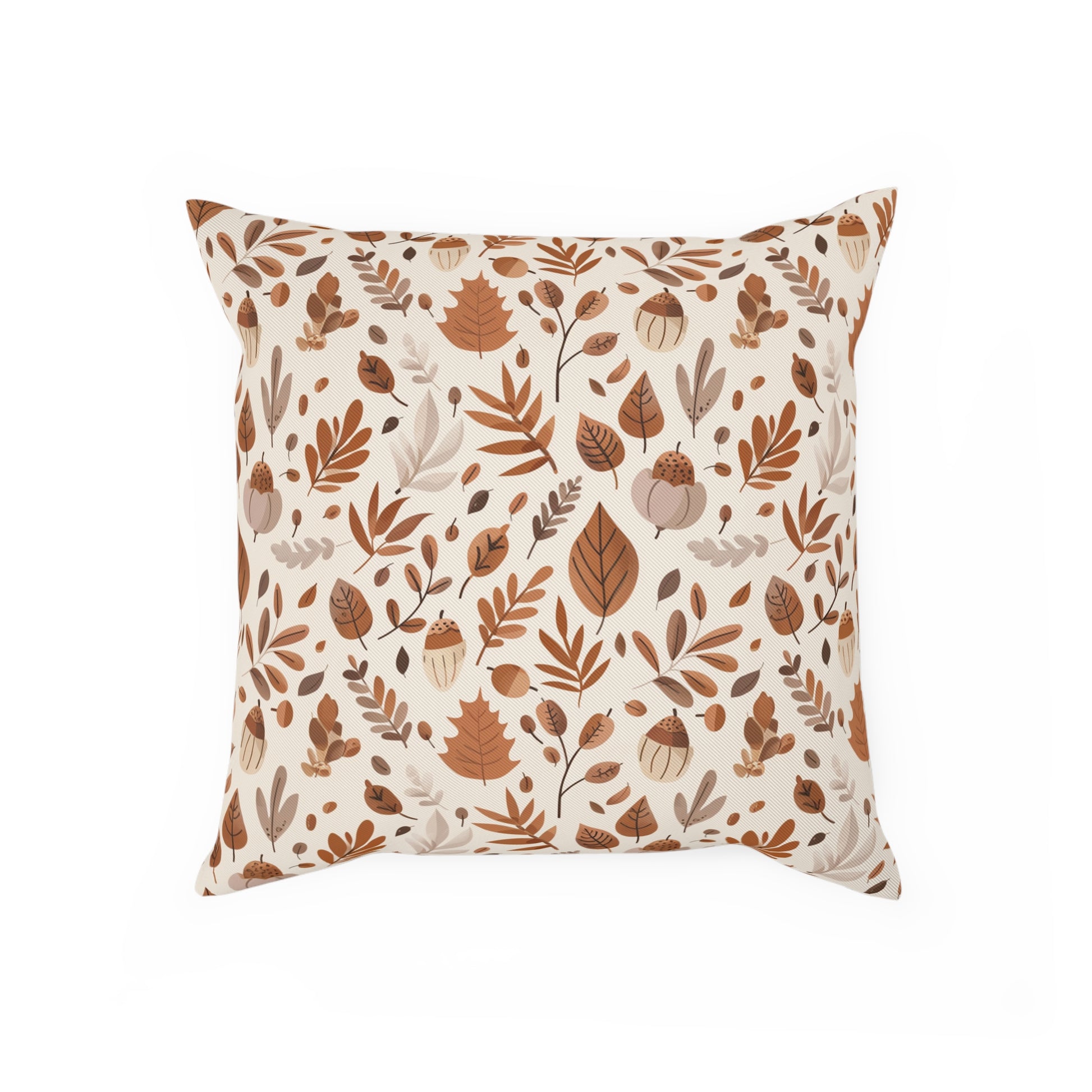 Ein detailreiches Muster aus Eicheln und Blättern in warmen Brauntönen bringt die ruhige Schönheit des Waldes direkt in dein Zuhause. „Acorn Forest“ ist ein vielseitiges Kissen, das sich wunderbar in gemütliche Wohnzimmer, natürliche Farbwelten oder den Wintergarten einfügt.