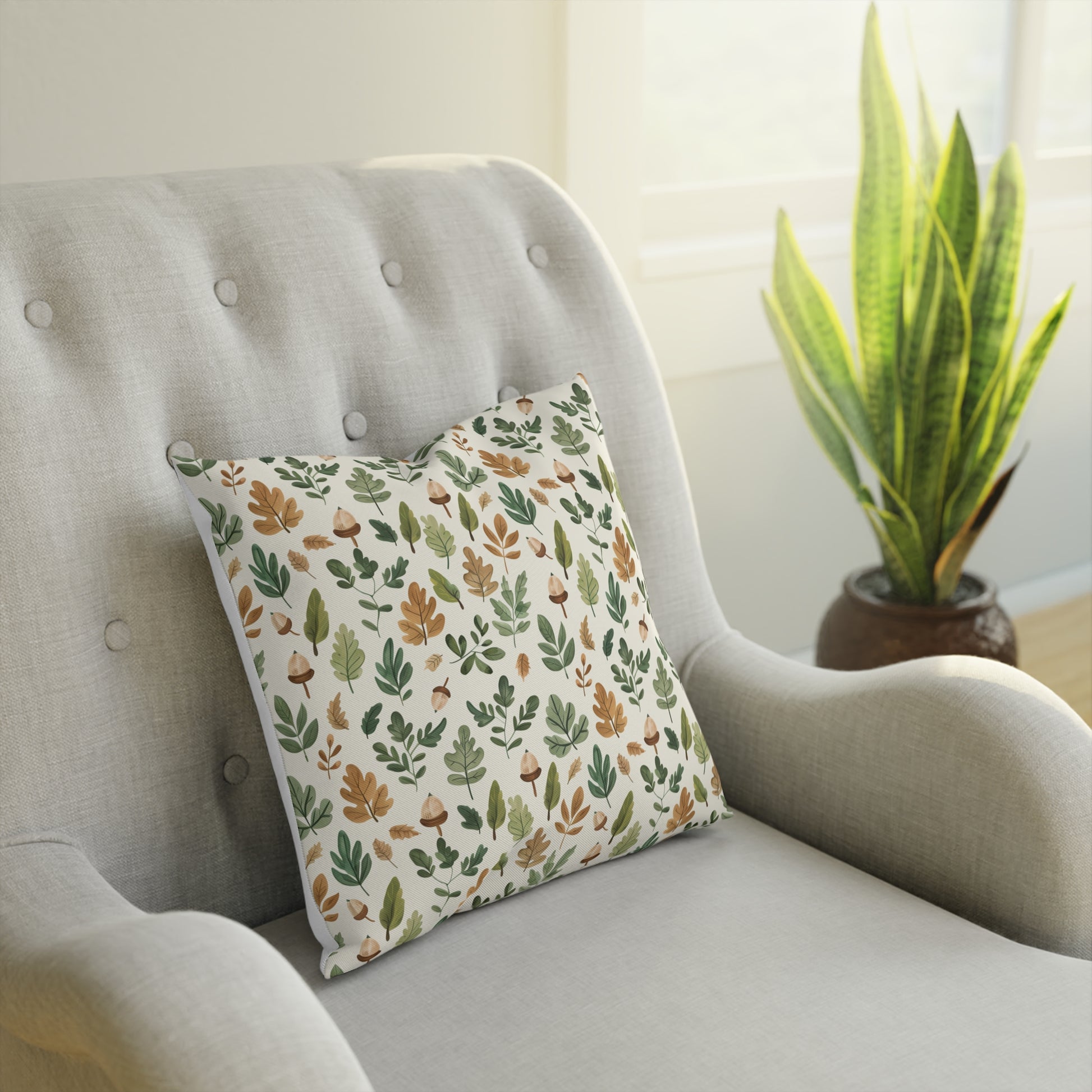 Grüne Blätter, braune Eicheln und kleine Pilze – „Forest Mix“ bringt ein Stück Natur direkt auf dein Sofa. Das harmonische Muster in erdigen Farben passt ideal zu einem natürlichen Einrichtungsstil und sorgt für eine ruhige, gemütliche Stimmung. Perfekt für Wohn- und Schlafzimmer oder als sanfter Akzent im Herbst.