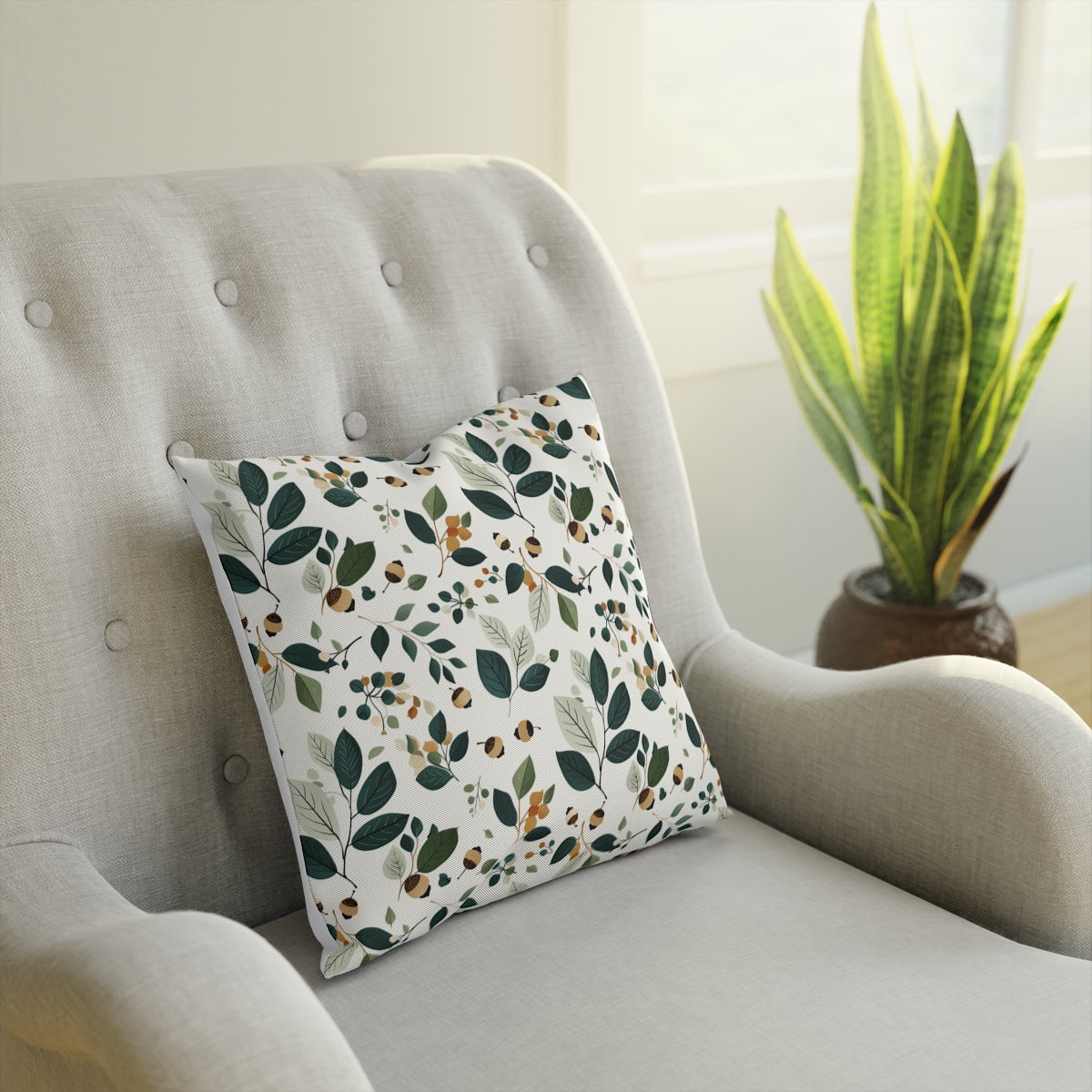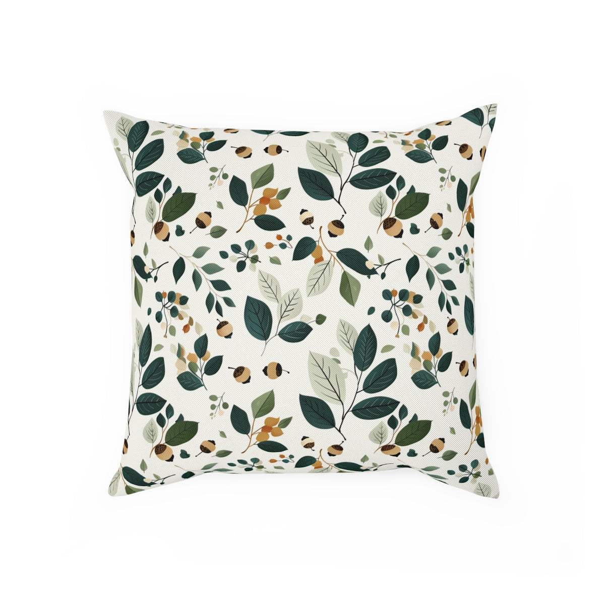 Ein verspieltes Muster aus satten Blättern und feinen Eicheln bringt natürliche Eleganz und Waldstimmung in dein Zuhause. „Woodland Charm“ ist ein zeitloser Akzent für Sofa, Bett oder deinen Wintergarten – dezent, stilvoll und immer passend.